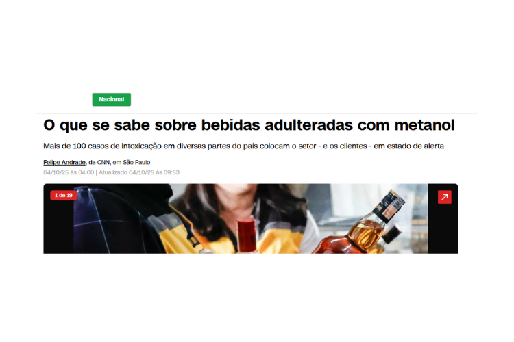 A crise causada por bebidas adulteradas com metanol já soma mais de 100 casos suspeitos em seis estados e no Distrito Federal, segundo o Ministério da Saúde. Em entrevista à CNN, o presidente-executivo da Abrasel, Paulo Solmucci, reforçou a importância de que bares e restaurantes redobrem a atenção na compra de bebidas e na checagem de rótulos e lacres.